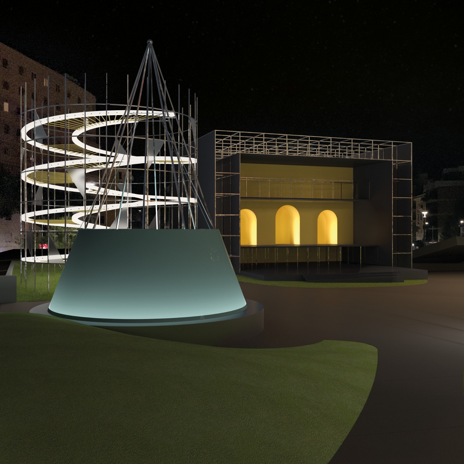 Urban Installation reactivates Piazza Annibaliano through a narrative spatial system.